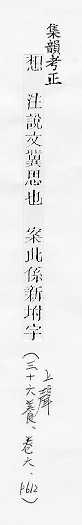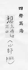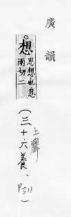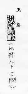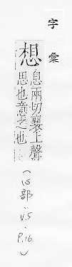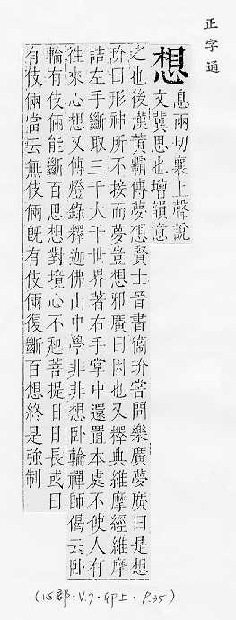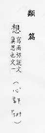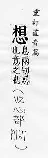 动脑筋,思索:感~。思~。~法。~象(配置组合而创造出新形象的心理过程)。~入非非。异~天开。幻~。 推测,认为:~必。~见(由推想而知道)。~来(表示只是根据推测,不敢完全肯定)。~当然(凭主观推测,认为事情应该是这样)。不堪设~。 希望,打算:休~。理~。~望。妄~。 怀念,惦记:~念。朝思暮~。 像:云~衣裳花~容。