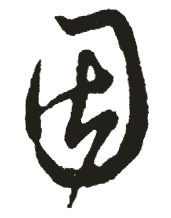 (会意。从囗(wéi)大。大,人。甲骨文字形,象人在车席子上。本义:“茵”的本字,坐垫,车垫)