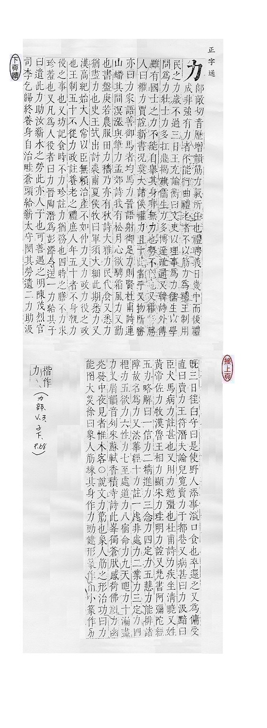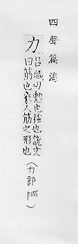人和动物筋肉的效能:~气。~量。 一切事物的效能:视~。生产~。控制~。 物理学上指物体之间相互作用,引起运动加速或形变:~学。作用~。保守~。 用极大的力量:尽~。~挫。~挽狂澜。 姓。