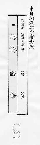 中日朝漢字字形對照