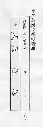 中日朝漢字字形對照
