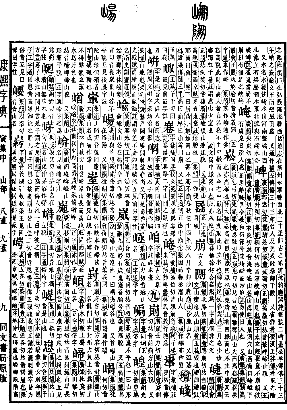 〔古文〕𨹹《广韵》北滕切《集韵》《韵会》悲朋切,𠀤音绷。《说文》山坏也,从山朋声。《玉篇》毁也。《礼·曲礼·注》郉昺曰:自上坠下曰崩。《诗·小雅》如南山之寿,不骞不崩。《春秋·僖十四年》秋八月辛卯,沙鹿崩。《注》沙鹿,山名。 又殂落也。《穀梁传·隐三年》高曰崩,厚曰崩,尊曰崩。 又姓。《正字通》明正德中崩愈坚,固始县丞,潜山人。 《集韵》作𡹔。亦作𨻱。