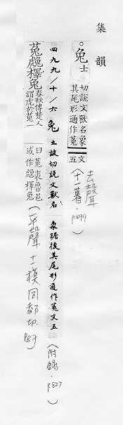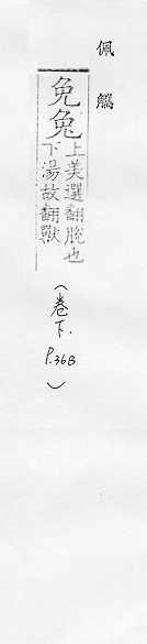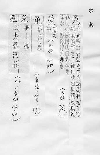 哺乳动物,耳长,尾短,上唇中间裂开,后肢较长,跑得快:~子。~脱(迅速地逃走)。~毫笔。~起鹘落(鹘,打猎用的猛禽。兔子才起来而鹘已经扑下去,喻动作敏捷。亦喻作书画或写文章下笔迅捷)。 古称娈童(指被当作女性玩弄的美貌男子)。
