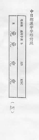 中日朝漢字字形對照