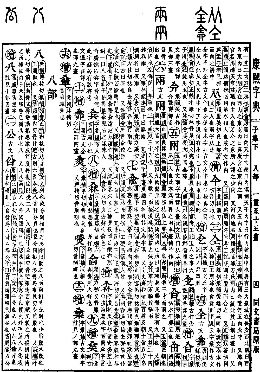〔古文〕𠓴《唐韵》疾缘切《集韵》《韵会》从缘切《正韵》才缘切,𠀤音泉。《说文》完也。《玉篇》具也。《周礼·冬官考工记》玉人之事,天子用全。《注》纯用玉也。又姓。《韵会》吴有大司马全琮。又《韵会》州名。汉零陵郡,晋置全州。