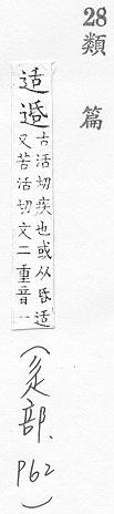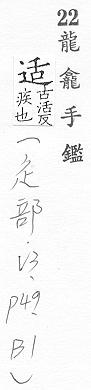 切合,相合:~当。~龄。~销。~度(dù)(程度适当)。~应(适合客观条件或需要)。 舒服:~意。舒~。 刚巧:~中。~值(恰好遇到)。~可而止。 刚才,方才:~才(刚才)。~间。 往,归向:无所~从。 旧称女子出嫁:~人。