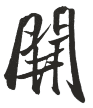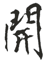 (会意。小篆字形,两边是两扇门,中间一横是门闩,下面是一双手,表示两手打开门闩之意。本义:开门)