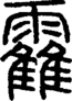 飛聲也。此字之本義也。引伸爲揮霍、爲靃靡。靃靡音選委切。从雨雔。各本少此三字。今補。呼郭切。五部。俗作霍。雨而雔飛者其聲靃然。說从雨之意。