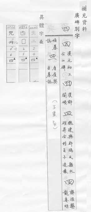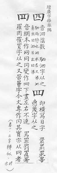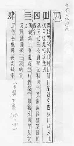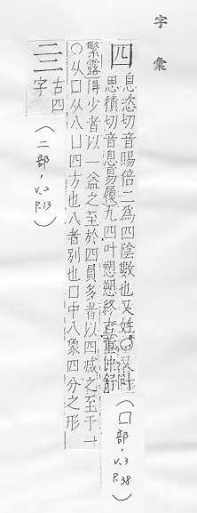 数名,三加一(在钞票和单据上常用大写肆代):~方。~边。~序(即“四季”)。~体(a.指人的四肢;b.指楷、草、隶、篆四种字体)。~库(古籍经、史、子、集四部的代称。亦称“四部”)。~君子(中国画中对梅、兰、竹、菊四种花卉题材的总称)。 中国古代乐谱的记音符号,相当于简谱中的低音“6”。