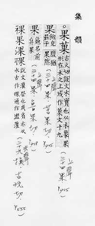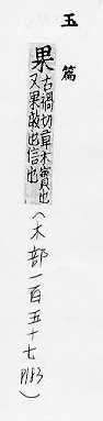植物所結的實。如:「水果」、「乾果」。韓非子.五
