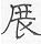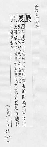 张开,舒张开:~开。~示。~玩。~现。~宽。~望。发~。愁眉不~。 延缓,放宽期限:~延。~期。~缓。 察看,省(xǐng )视:~墓。 陈列:~品。~销。~播。~评。 施行,发挥(能力):~拜。开~。施~。一~宏图。 古同辗,辗转。 姓。