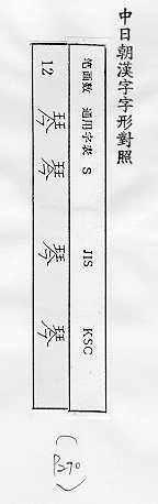 中日朝漢字字形對照