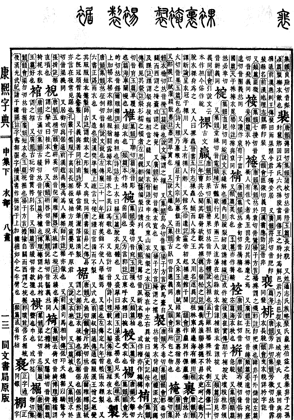 《唐韵》薄回切《集韵》蒲枚切,𠀤音陪。《玉篇》长衣貌。 又姓。《通志·氏族略》裴氏,嬴姓,伯益之后,秦非子之孙,封𨛬鄕,因以为氏。六代孙陵,当周僖王之时,封为解邑君,乃去邑从衣。又西域有裴氏。 又裴回,与徘徊通。《前汉·燕刺王传》裴回两渠闲兮,君子独安居。 又《广韵》符非切,音肥。即裴,县名。《前汉·地理志》魏郡即裴。 又《韵会》匪微切。义同。《汉书·应劭注》音非。