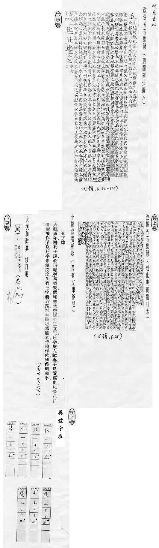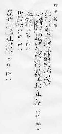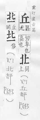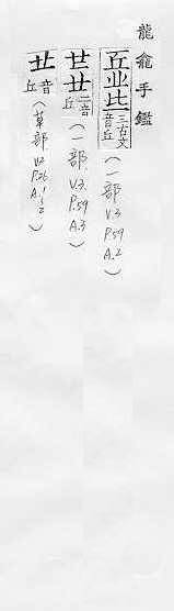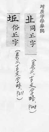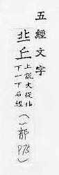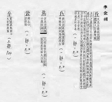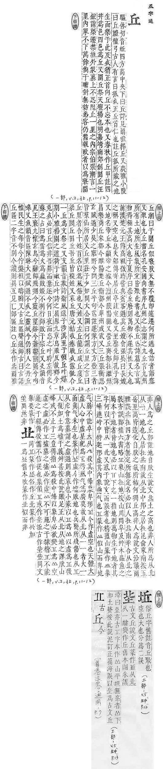 小土山:土~。沙~。~陵。~壑。 像小土山凸起的:~疹。 坟墓:~墓(大墓)。~垄。 量词,指用田塍隔开的水田:一~十亩大的小田。 众人聚居的地方:~民(乡民,邑民)。 用砖石封闭有尸体的棺材。 姓。