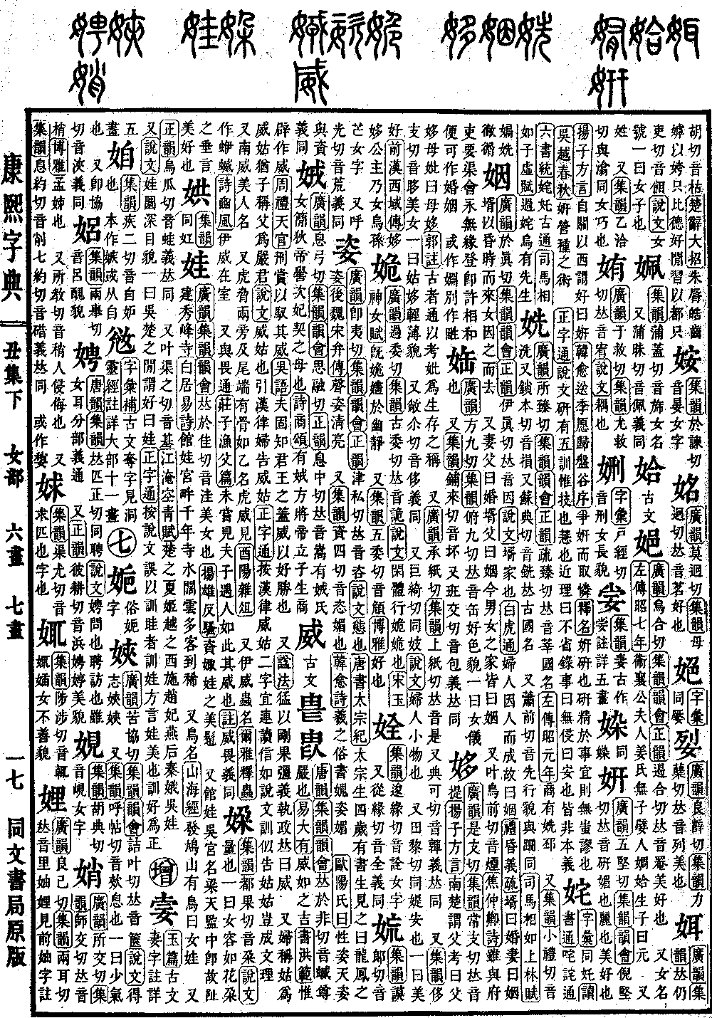 《广韵》于真切《集韵》《韵会》《正韵》伊真切,𠀤音因。《说文》壻家也。《白虎通》妇人因人而成,故曰姻。《礼·昏义疏》壻曰婚,妻曰姻,壻以昏时而来,女因之而去。 又妻父曰婚,壻父曰姻。今男女之家皆曰姻。 又叶乌前切,音烟。《焦仲卿诗》虽与府吏要,渠会永无缘。登即许相和,便可作婚姻。 或作婣。别作𤯠。