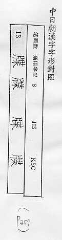 中日朝漢字字形對照