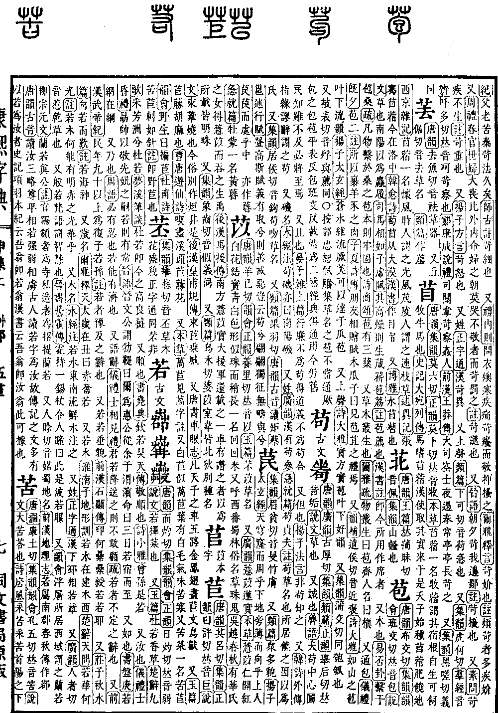 〔古文〕𦱡𦱶𧁇《唐韵》而灼切《集韵》《韵会》《正韵》日灼切,𠀤音弱。《说文》若,择菜也。 又《玉篇》杜若,香草。《楚辞·九歌》采芳洲兮杜若。《梦溪笔谈》杜若,即今之高良姜。 又顺也。《书·尧典》钦若昊天。《传》敬顺也。《诗·小雅》曾孙是若。 又汝也。《仪礼·士昏礼》勗帅以敬先妣之嗣,若则有常。《晋语》晋文公谓勃鞮曰:尔为惠公从余于渭濵,命曰三日,若宿而至。 又如也。《书·盘庚》若网在纲。 又乃也。《周语》必有忍也,若能有济也。 又语辞。《仪礼·士相见礼》君若降送之,则不敢顾。《疏》若者,不定之辞也。 又《前汉·武帝纪》民年九十以上,为复子若孙。《注》若者,豫及之辞也。 又若若,垂貌。《前汉·石显传》印何累累绶若若耶。 又《庄子·秋水篇》向若而叹。《注》若,海神。 又岁名。《尔雅·释天》太岁在丑曰赤奋若。 又若木。《淮南子·地形训》若木在建木西。《楚辞·天问》若华何光。《注》若木何能有明赤之光华乎。 又水名。《水经注》若水东南流,鲜水注之。 又姓。《正字通》汉下邳相若章。 又《广韵》人者切,音惹。干草也。 又般若,梵语谓智慧也。《晋书·昙霍传》霍持一锡杖,令人跪,曰:此是波若眼。 又《韵会》浮屠所居,西域谓之兰若。《柳宗元文》兰若真公。《注》官赐额者为寺,私造者为招提、兰若。 又人赊切,音婼。蜀地名。《前汉·地理志》若属南郡,春秋传作鄀。《唐韵古音》读汝三略,尊𤰞相若,强弱相虏。古人读若字为汝,故传记之文,多有以若为汝者。《史记·项羽本纪》云:吾翁即若翁,《汉书》云吾翁即汝翁,此可据也。
