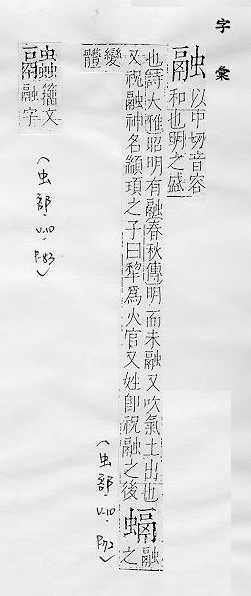 固体受热变软或化为流体:~化。~解。消~。 调合,和谐:~合。~洽。~汇贯通。其乐~~。 流通:~泄(飘动,浮动)。金~(货币的流通,即储蓄,信贷、汇兑、股票和证券交易等经济活动的总称)。 长远、永久:~裔(形容声调悠长)。