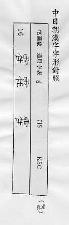 中日朝漢字字形對照