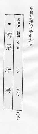 中日朝漢字字形對照
