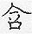 衔在嘴里,不吐出也不咽下:~一口水。~漱剂。~英咀(jǔ)华(喻反复琢磨体味文章的妙处)。~饴弄孙(含着糖逗小孙子,形容老年人的乐趣)。 藏在里面,包容在里面:包~。~义。~量。~苞。~蕴。~混。~垢纳污(指包容坏人坏事)。 怀有某种感情或意思,不完全表露出来:~怒。~羞。~情。===汉英互译===