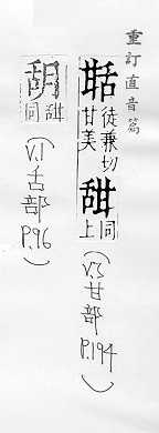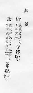 像糖或蜜的滋味,喻使人感到舒服的,与苦相对:~品。~食。~菜。~瓜。~美。~润。~适。~爽。~言蜜语。