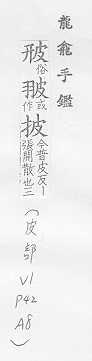 - 左:扌,右:皮。