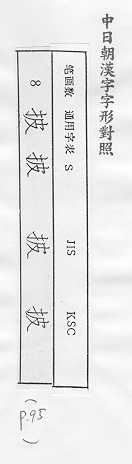 中日朝漢字字形對照