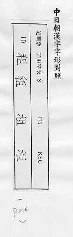 中日朝漢字字形對照