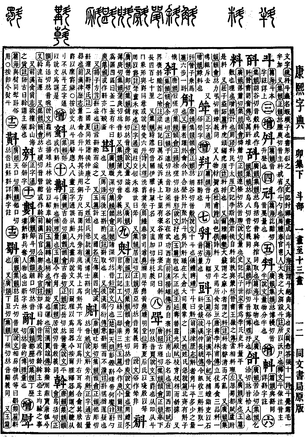 《广韵》职深切《集韵》《韵会》《正韵》诸深切,𠀤音针。《说文》勺也。《楚辞·天问》彭铿斟雉帝何飨。《注》斟,勺也。 又《周语》而后王斟酌也。《注》斟,取也。 又《后汉·冯衍传》意斟愖而不澹。《注》斟愖,犹迟疑也。 又《扬子·方言》斟,益也。《注》言斟酌而益之。 又《玉篇》计也。 又国名。《左传·襄四年》灭斟灌及斟寻氏。《注》二国,夏同姓诸侯,仲康之子。 又姓。《姓氏急就篇》汉博士斟尚。