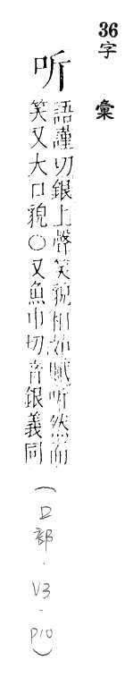 用耳朵接受声音:~力。~写。~觉。聆~。洗耳恭~。 顺从,接受别人的意见:言~计从。 任凭,随:~任(rèn )。~凭。~之任之。 治理;判断:~讼(审理案件)。~政。 量词,指马口铁密封成筒状以贮藏食物、饮料等:一~可口可乐。