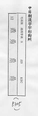 中日朝漢字字形對照