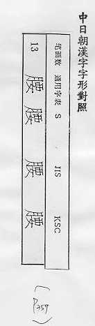 中日朝漢字字形對照