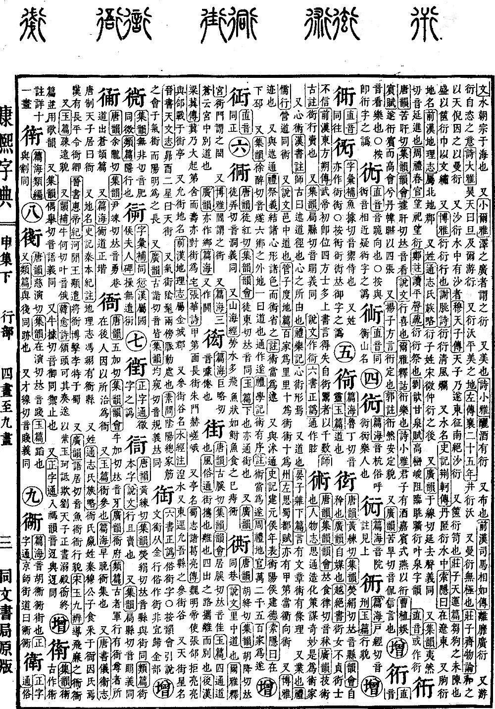 同巷。《说文》里中道也。《尔雅·释宫》衖门谓之闳。 又《博雅》阎谓之衖。 又《篇海》《三苍》云:宫中别道也。 《广韵》亦作