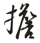 (形声。从手,詹声。本义:用肩挑)