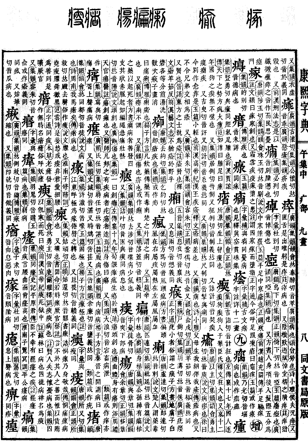 《唐韵》卢达切《集韵》郎达切,𠀤音剌。《说文》楚人谓药毒曰痛瘌。《博雅》瘌,痛也。《扬子·方言》凡饮药傅药而毒,南楚之外谓之瘌。 又《玉篇》辛也。 又《广韵》痨瘌不调。 又《集韵》伤也。疥也。或作癞。 又《集韵》落盖切,音赖。义同。