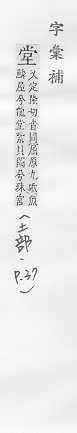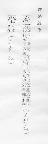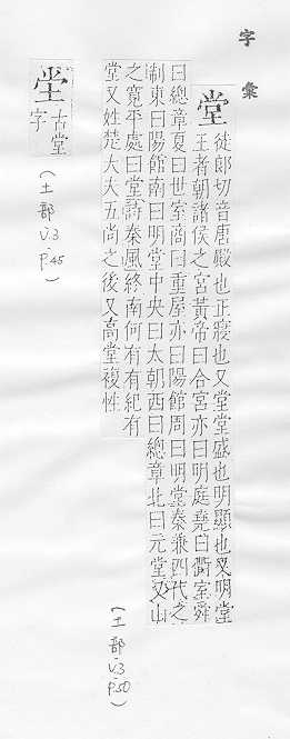 正房,高大的房子:~屋。~客。~倌。礼~。澡~。 同祖父的亲属关系:~房。~兄弟。 旧时官吏审案办事的地方:大~。公~。过~。 量词:上了一~课。一~家具。