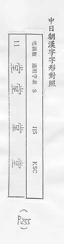 中日朝漢字字形對照