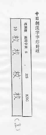 中日朝漢字字形對照