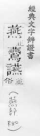 - yàn yān 注音:ㄧㄢˋ ㄧㄢ