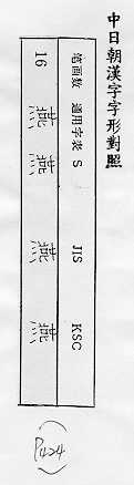 中日朝漢字字形對照