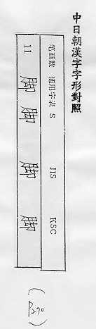 中日朝漢字字形對照