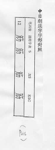 中日朝漢字字形對照
