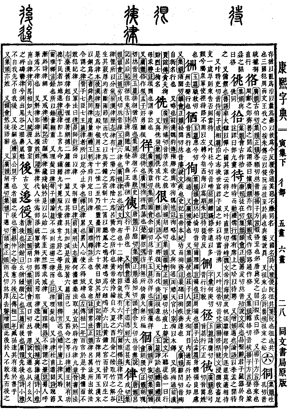 《唐韵》徒在切《集韵》《韵会》《正韵》荡亥切,𠀤音殆。《说文》竢也。《易·系辞》君子藏器于身,待时而动。《礼·儒行》儒有席上之珍,以待聘。 又《增韵》遇也。《论语》以季孟之闲待之。 又备御也。《鲁语》率大仇。以惮小国,其谁云待之。 又叶直里切,音峙。《魏文帝·浮海赋》众帆张,羣櫂起,争先逐进,莫适相待。 又叶时吏切,音侍。《荀子·成相篇》治之志后埶富,君子诚之,好以待。富音沸。 又叶徒帝切,音兑。《欧阳修·祭龙文》浸润收畜,足支一岁。旱则来告,否则当待。 又叶杜兮切,音啼。《屈原·离骚》路修远以多艰兮,腾众军使径待。路不周以左转兮,指西海以为期。《朱注》待,徒奇反。*考证:〔《荀子·成相篇》治之志后世富,君子诚之,好以待。〕 谨照原文世改埶。