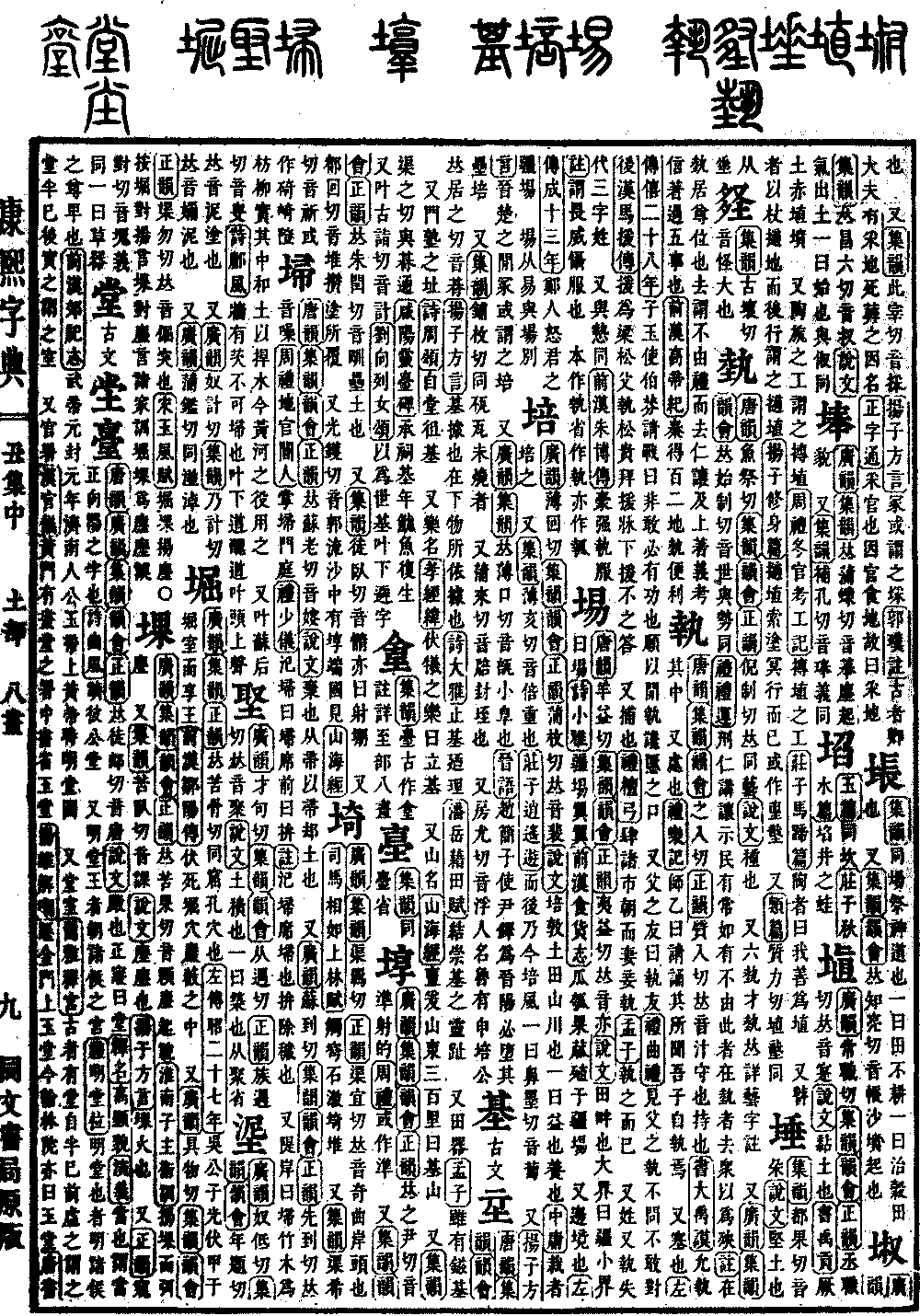 《广韵》薄回切《集韵》《韵会》《正韵》蒲枚切,𠀤音裴。《说文》培敦土田山川也。一曰益也,养也。《中庸》栽者培之。 又《集韵》薄亥切,音倍。重也。《庄子·逍遥游》而后乃今培风。一曰鼻墨切,音卜。 又《扬子·方言》晋楚之闲,冢或谓之培。 又《广韵》《集韵》𠀤薄口切,音瓿。小阜也。《晋语》赵简子使尹铎为晋阳,必堕其垒培。 又《集韵》铺枚切。同𤬭,瓦未烧者。 又蒲来切,音𤗏。封垤也。 又房尤切,音浮。人名。鲁有申培公。