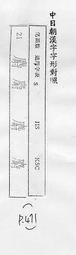 中日朝漢字字形對照