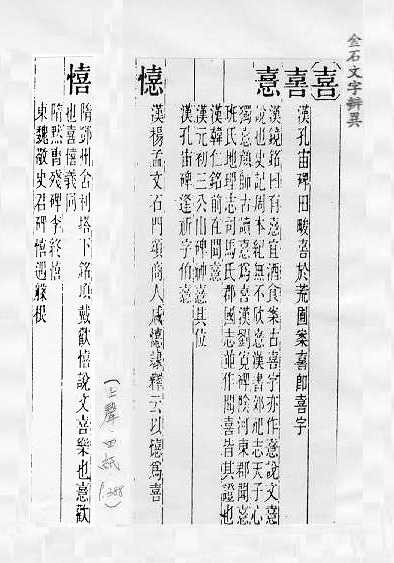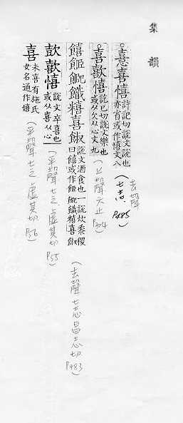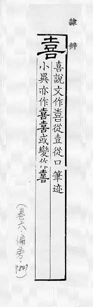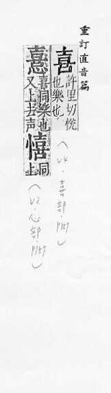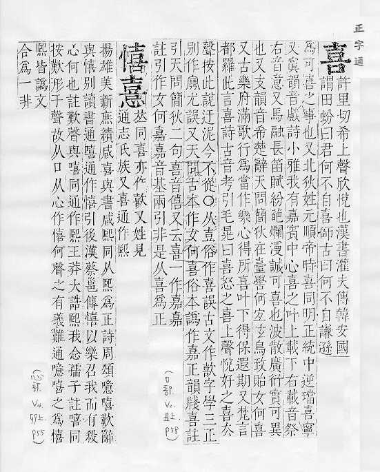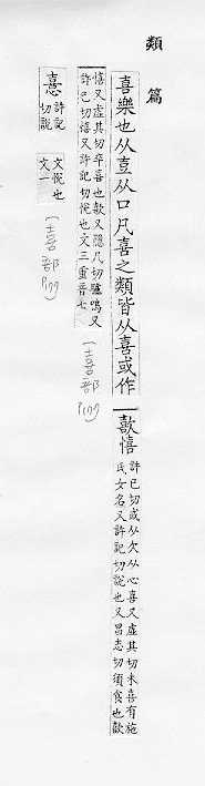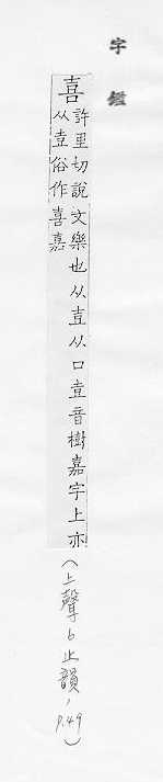 高兴,快乐:欢~。~悦。~讯。~剧。~气。~色。~幸。~乐(lè ㄌㄜˋ)。~洋洋。欢天~地。欣~若狂。 可庆贺的,特指关于结婚的:~事。~酒。~糖。~蛋。~联。~幛。~雨。~报。~庆。贺~。报~。 妇女怀孕:害~。她有~了。 爱好:~爱。~好(好)。~欢。好(hào ㄏㄠˋ)大~功(热衷于做大事,立大功,现常用以形容浮夸的作风)。 适于:~光植物。海带~荤。 姓。