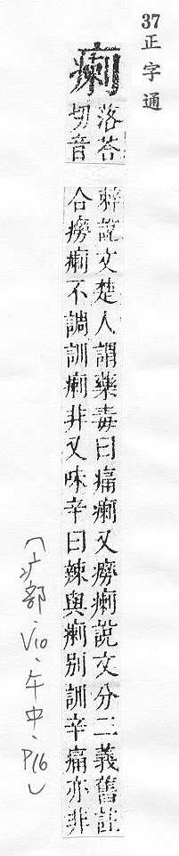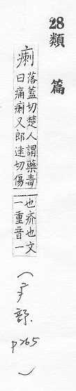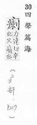 左上:疒,右下:剌。