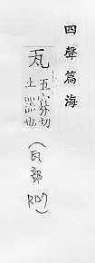 - wǎ wà 注音:ㄨㄚˇ ㄨㄚˋ