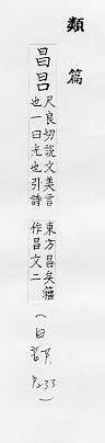 兴盛:~盛(shèng)。~乐(lè)(兴盛康乐)。~明(兴盛发达)。~隆。 善,正当:~言(美言,正当的话)。~言无忌(直言无隐)。 古同菖,菖蒲。 古同猖,凶猛。 姓。